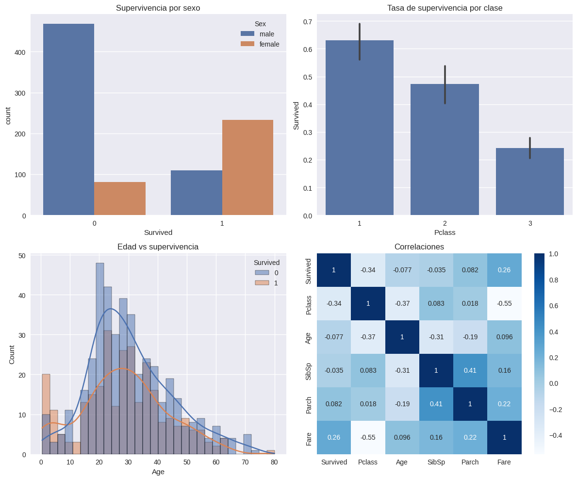 El análisis exploratorio reveló que la supervivencia en el Titanic estuvo fuertemente influenciada por factores socioeconómicos y demográficos. Las variables más predictivas fueron el sexo, la clase del pasajero y la tarifa pagada.