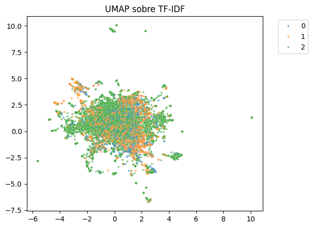 Se observa cierta agrupación, especialmente de la clase Neutral, pero hay un solapamiento considerable entre Bullish y Bearish en la proyección 2D de TF-IDF. Esto se debe a que comparten mucho vocabulario (e.g., "price", "target", "earnings") y la diferencia radica en el contexto o adjetivos específicos que TF-IDF no separa tan claramente como los embeddings contextuales.