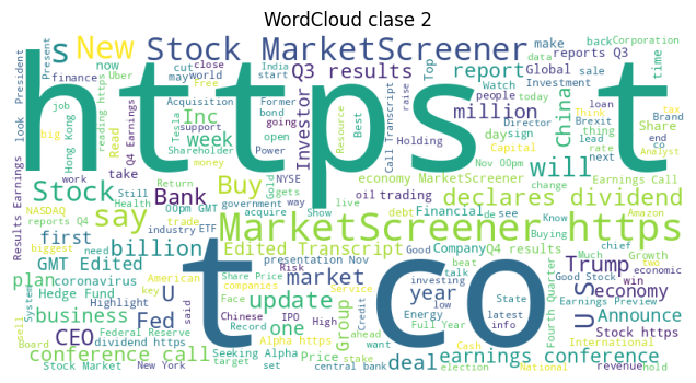 Las nubes de palabras (aunque visuales) confirmarían el predominio de términos de enlace que pueden aparecer en cualquier sentimiento. El ruido principal son las URLs y menciones de usuarios o tickers que no llevan carga de sentimiento.